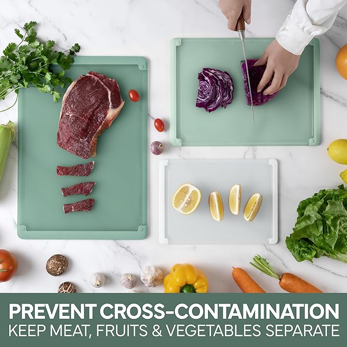 - ADD COLOR AND STYLE - We understand kitchen trends, and our small, medium and large plastic cutting boards in beautiful colors will add that great touch to your kitchen.