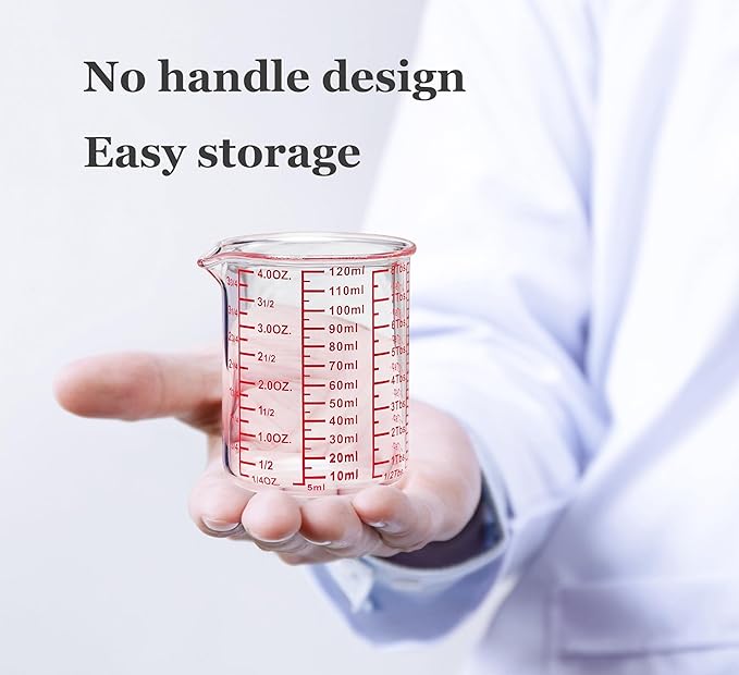 High Borosilicate Glass Measuring Cup-V-Shaped Spout,Glass Measuring Beaker for Kitchen or Restaurant, Easy to Read, 120 ML (4 Oz)-Pack of 2