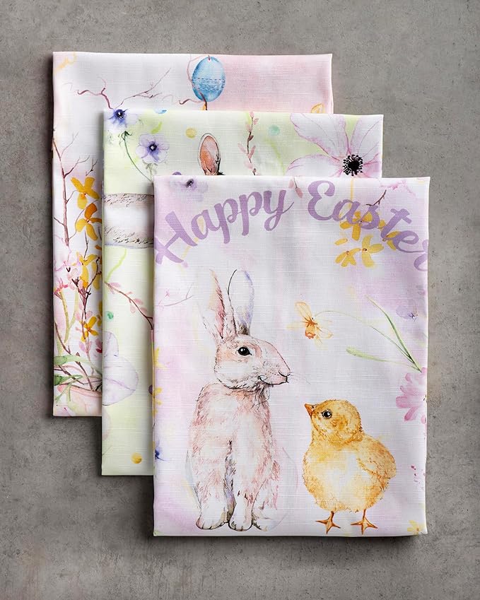 Maison d' Hermine Kitchen Towels Set of 3 100% Cotton 27.50" x 20" Reusable Cloth Tea Dish Towels Absorbent with Hanging Loop for Kitchen, Home, Dining, Cocktail Parties Spring/Summer (Easter Zest)