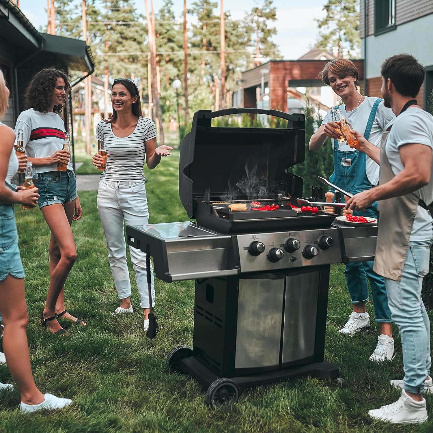 - Easy To Use: Using tips, Griddle top for gas grill heats up first, then add plenty of oil, after the oil smokes, put in the food to avoid food sticking to the griddle, detachable side handles helps to easily fix the griddle, ensuring that you can move the food anywhere. Note: not dishwasher safe. Perfect for breakfast, lunch and dinne, grill food well, such as pancakes, mushrooms, meat and shrimp, etc