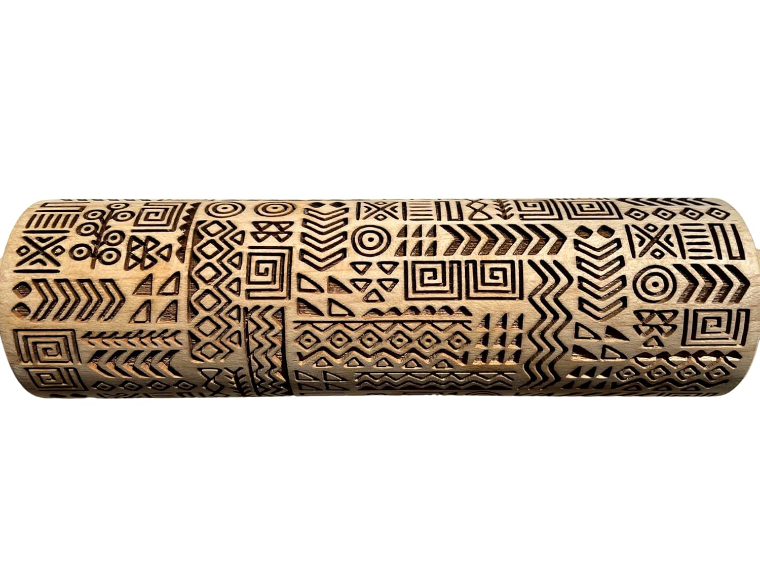 TRIBAL Embossing Rolling Pin. Laser Engraved Dough Roller for Embossed Cookies or Pottery by Algis Crafts
