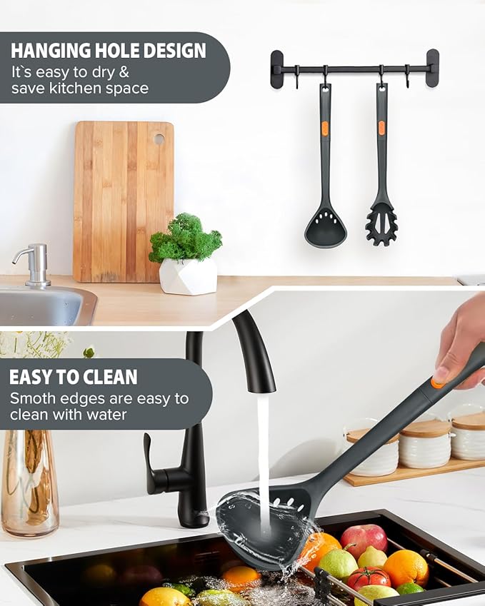 - Ergonomic Handles for Comfort: The utensils feature ergonomic silicone handles that provide a comfortable grip and excellent control while cooking. Say goodbye to hand fatigue and enjoy cooking with ease.