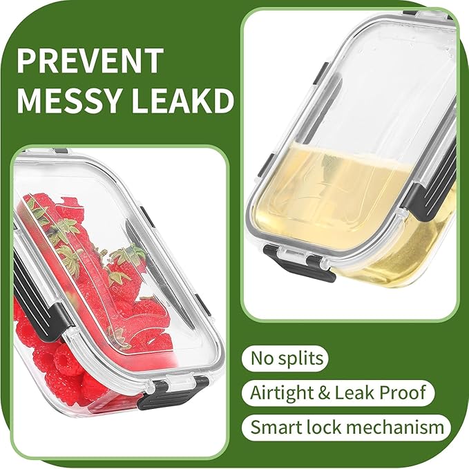 - No Leakage: Glass meal prep containers with lids are designed with removable silicone seals and Upgraded Snap Locking Lids to create an airtight and leak-proof barrier, ensuring your food stays fresh and spill-free. You can confidently carry soups, sauces, and even salads in your bag without any worries of messy accidents