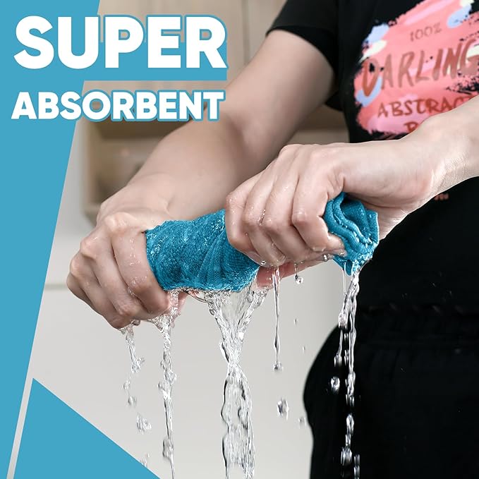 - ABSORBENT & LONG-LASTING TOWELS AND DISHCLOTHS: 4pcs large kitchen towels and 4 pcs small dishcloths are all made of pure spun cotton with waffle weave patterns. These materials are greatly absorbent, quick drying and breathable. The selected fabric is long-lasting and reusable. Drying in time after washing can increase the service life