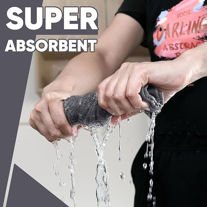 - ABSORBENT & LONG-LASTING TOWELS AND DISHCLOTHS: 4pcs large kitchen towels and 4 pcs small dishcloths are all made of pure spun cotton with waffle weave patterns. These materials are greatly absorbent, quick drying and breathable. The selected fabric is long-lasting and reusable. Drying in time after washing can increase the service life
