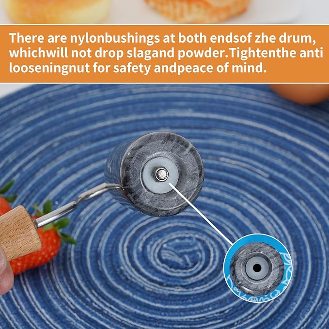 - 【Exquisite design and production process】Nylon bushings are installed at both ends of the marble roller, which is easy and labor-saving during use; at the same time, during the rolling process of the roller, the roller will not directly contact the marble, so as to avoid the marble slag and powder. Stainless steel metal frame, durable and not easily deformed. The beech wood handle is finely ground and polished for easy grip and a comfortable feel.