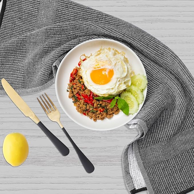 Homaxy Premium Kitchen Towels(18”x 28”, 6 Pack), Large Cotton Kitchen Hand Towels, Flat and Terry Dish Towels, 380 GSM Highly Absorbent Tea Towel Set with Hanging Loop, Black