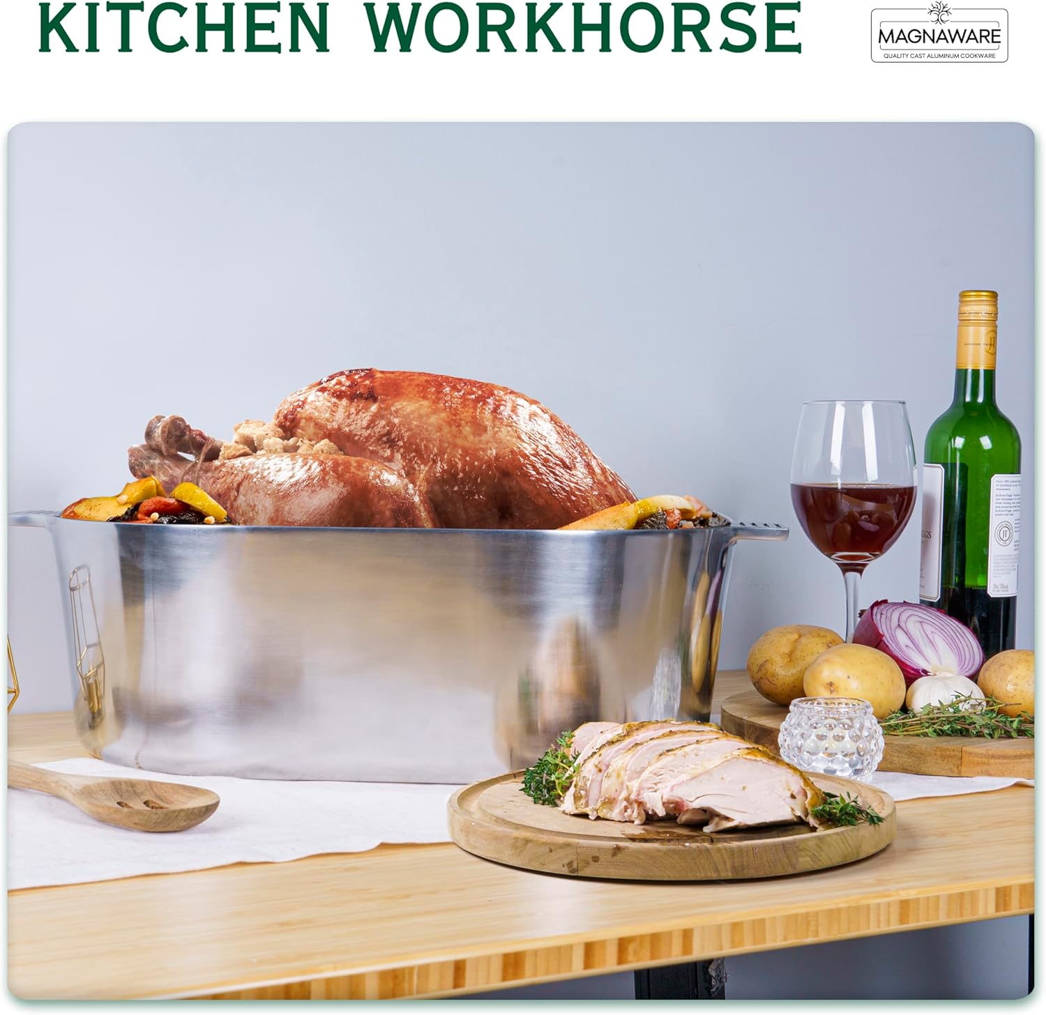 - BUILT TO LAST GENERATIONS: Constructed for durability, this heavy-duty cast aluminum pot is oven safe up to 450°F. MAGNAWARE dutch ovens feature a classic polished aluminum finish that complements any kitchen aesthetic. For best results, simply use a small amount of oil, and to preserve the surface, we recommend silicone, wood, or nylon utensils over metal ones.