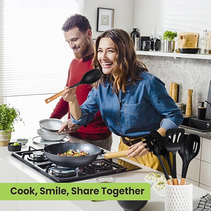 - FOOD GRADE SILICONE KITCHEN UTENSILS SET: This kitchen utensil set is made of food grade silicone, BPA free, can be used for any type of food, will not react with food or beverages even at high temperatures, and will not retain an odor or color. Before using for the first time, it is recommended to soak the cookware for half an hour and then expose it to air for about 3 hours, the original odor will disappear