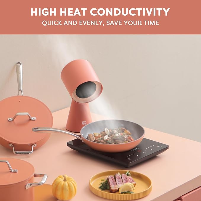 - ULTRA NONSTICK DESIGN: The nonstick ceramic coating with smooth surface, ideal for cooking with less oil and delivering the ultimate food release, perfect for slide-off-the-pan eggs, steak, pancakes and more.