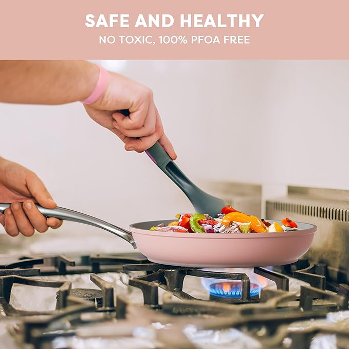 - TOXIC-FREE HEALTH-MINDED COOKING: The nonstick frying pan with ceramic coating, free of PTFE, PFOA and other toxic materials. It is safe for you, your family and the environment, leading you a healthy lifestyle.