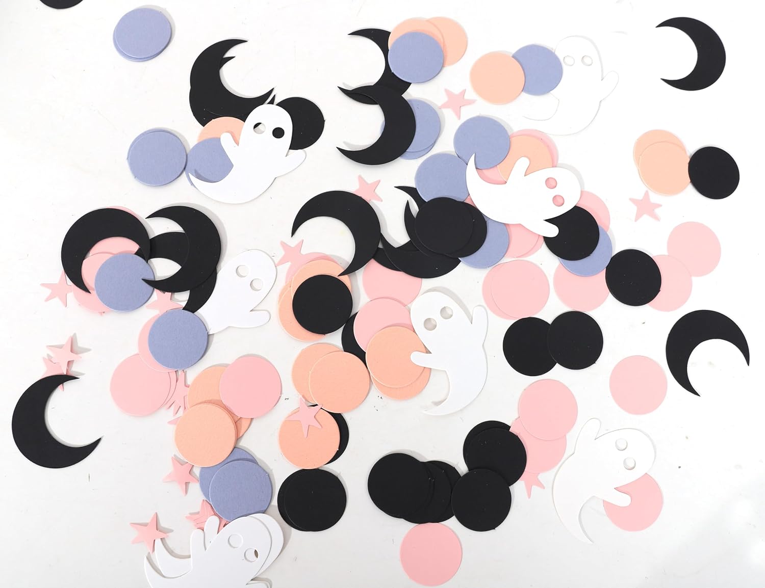 - SPECIAL DESIGN - Our confetti mix includes a variety of pink circle shapes, cute white ghost, and black moon, adding a whimsical and girly aspect to your Halloween decor. Shades of pink ranging from soft pastels to vibrant hues make this confetti mix visually appealing and perfect for the Halloween season.