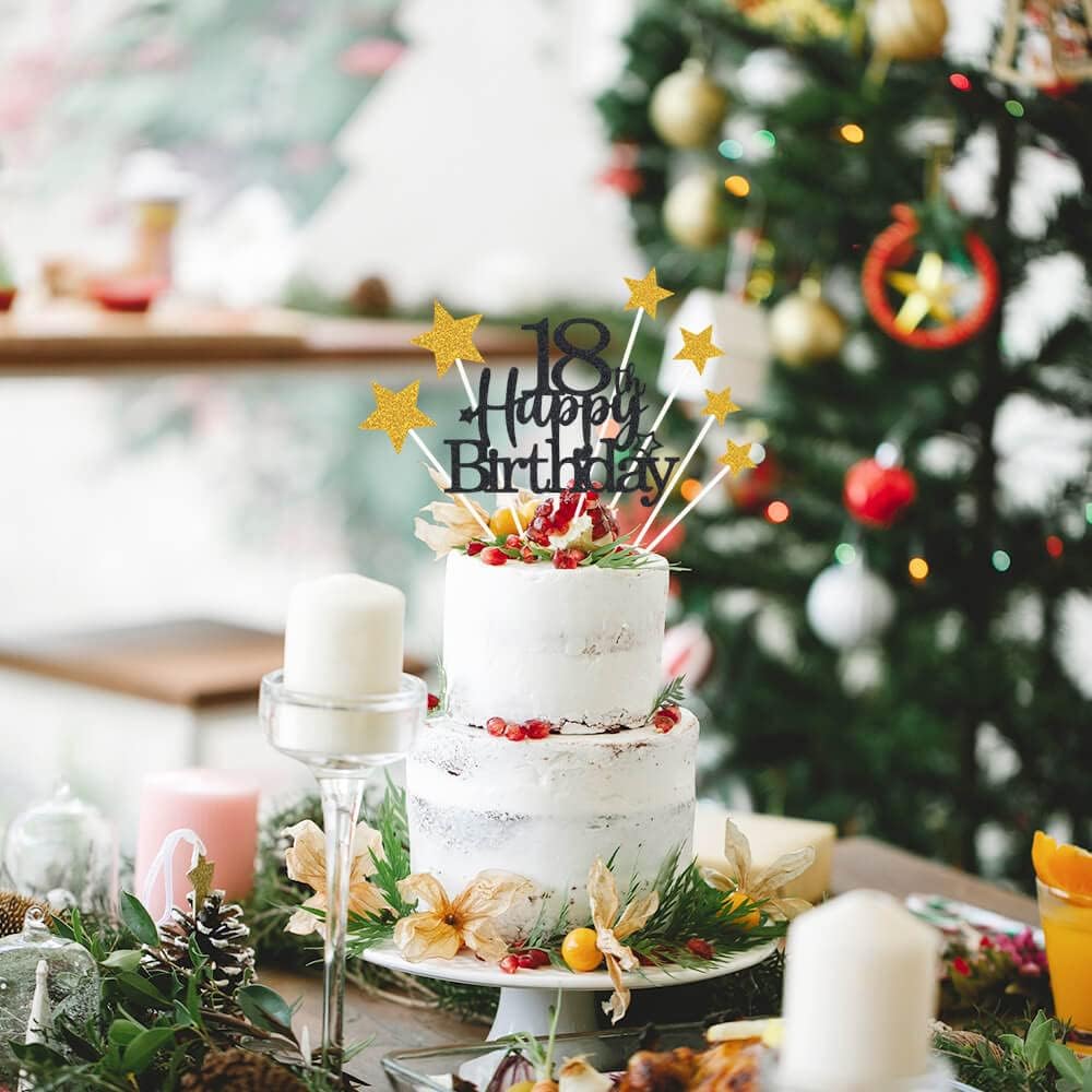 Glittery 18th Happy Birthday Cake Topper with Star,Personalised 18 Birthday Cake Toppers Party Decorations Party Supplies for Boys Girls Black Gold