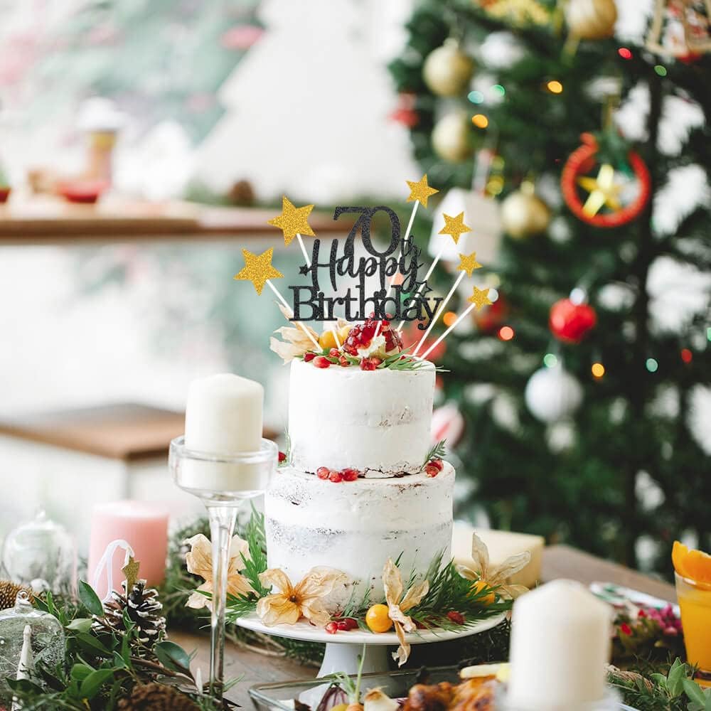 Glittery 70th Happy Birthday Cake Topper with Star,Personalised 70 Birthday Cake Toppers Party Decorations Party Supplies for Men Women Black Gold