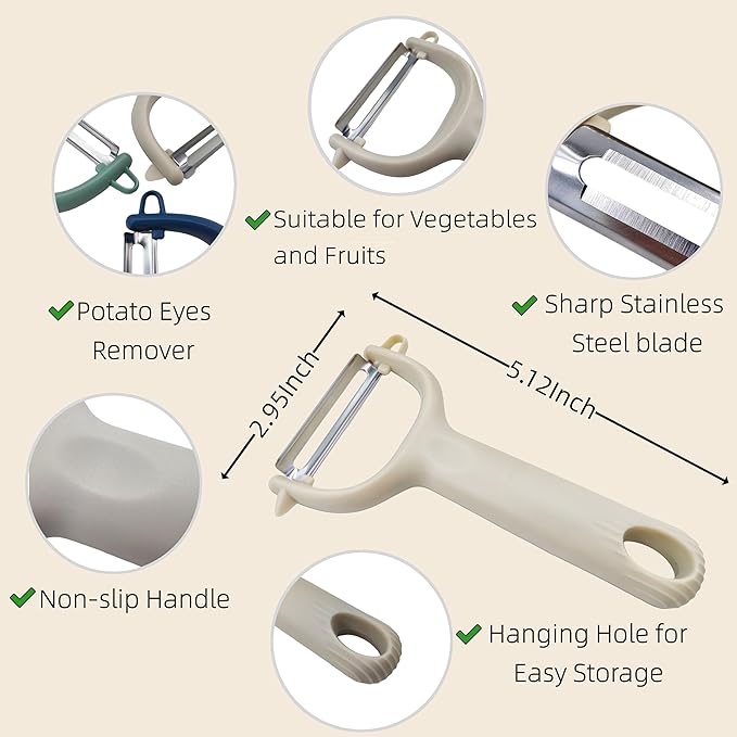 - đăEasy Peeling & Time SavingăSuper sharp stainless steel potato peelers removes the skin effortlessly and smoothly, maintains minimal resistance and glides easily through fruits and vegetables without getting clogged by the peel, making quick work of even tougher veggies like squash.