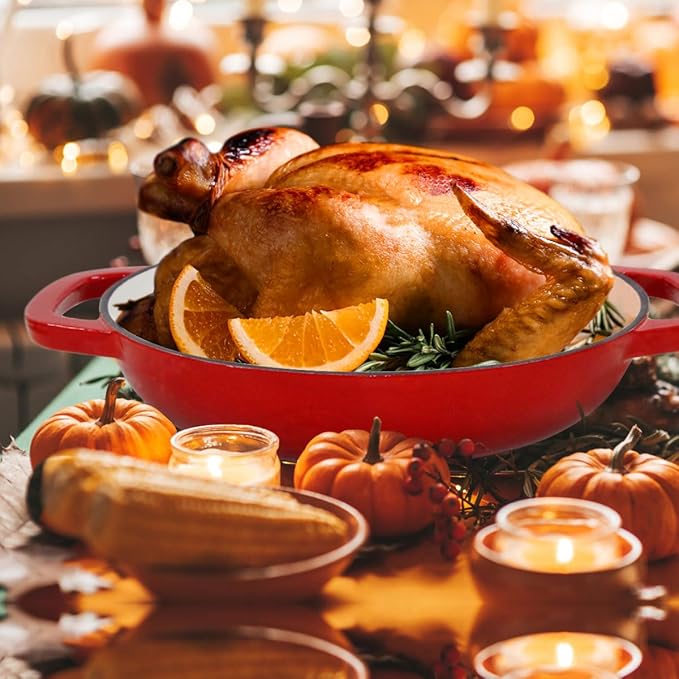 - 🍗DUTCH OVEN DELIGHTS:Our large and wide enamel cast iron bread dutch oven with lid is perfect for baking all types of bread,from round loaves to oval loaves and sourdough.Not only is it great for baking bread,but it's also suitable for roasting a chicken or braising a pot roast.The included non-stick silicone baking mat guarantees that your food won't stick to the cookware.Whether you're baking or cooking, this Dutch oven for bread baking is the perfect partner for your culinary experiments.