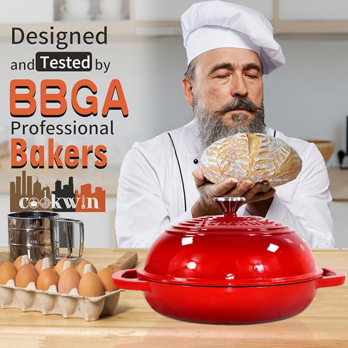 - 👨BAKE GOLDEN BREAD:With its unique tight-fitting domed lid that rivals industrial steam injector ovens, It's like having a bakery in your own kitchen.Impress your friends and family with artisanal-style bread that's crispy on the outside and irresistibly soft on the inside.you'll be producing artisan-quality bread with a crispy crust and soft interior that'll have your friends love for more.