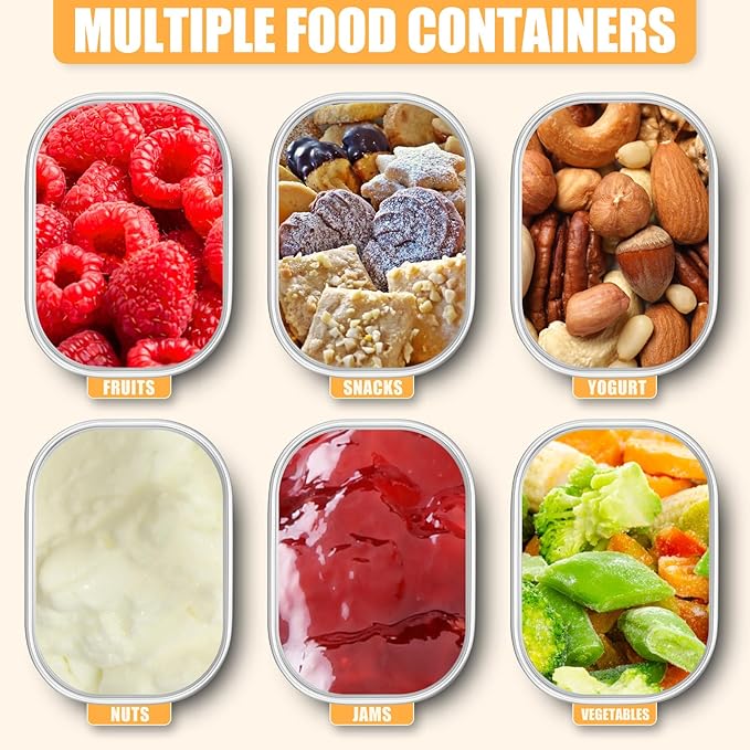 - Stackable and Easy to Clean: the stainless steel food containers with lids feature a stackable design, allowing for neat and efficient storage, saving your fridge or pantry space while keeping your snacks organized and easily accessible; Stainless steel lunch box containers have a smooth interior so that easy to clean and convenient to care, they are dishwasher and freezer safe