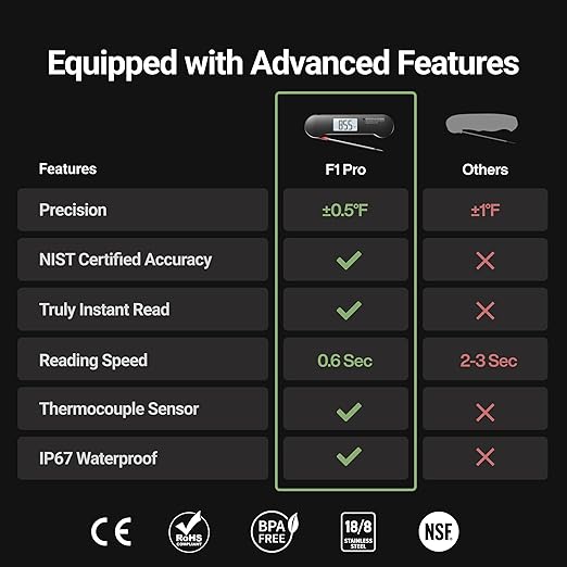 - 0.6s Reading Speed - ThermoMaven F1 Pro is a lightning-fast meat thermometer that reads temperatures accurately in 0.6 seconds, preventing burns and ensuring juicy, flavorful results.