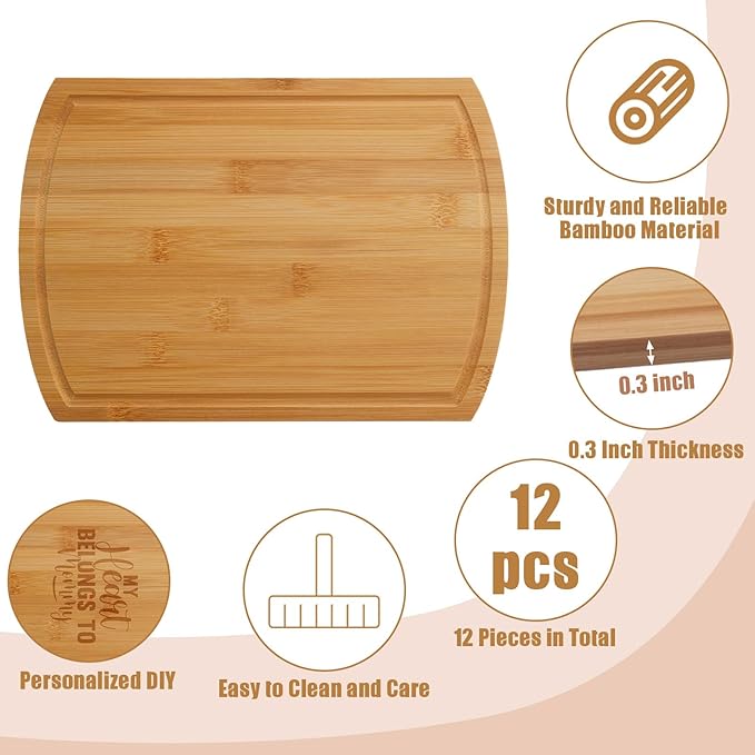 Patelai 12 Pack Large Cutting Boards Bulk Wooden Kitchen Chopping Boards for Crafts DIY Wedding Housewarming Gift(Bamboo,12 x 9 Inch)