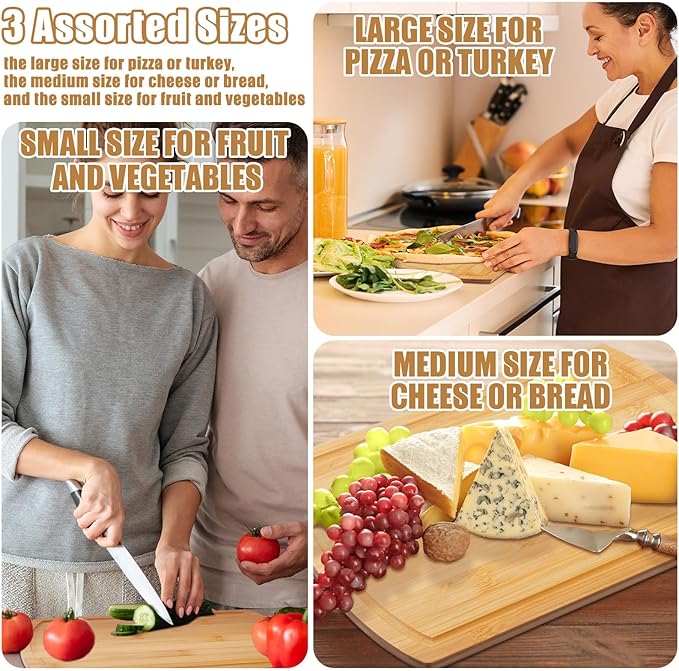 - Wide Application: our cutting boards are large and big enough to handle large roasts, such as turkey and ham, etc., ideal for cutting vegetables, bread, meat, cheese or other foods, they can also be ideal gifts for housewarming parties choose