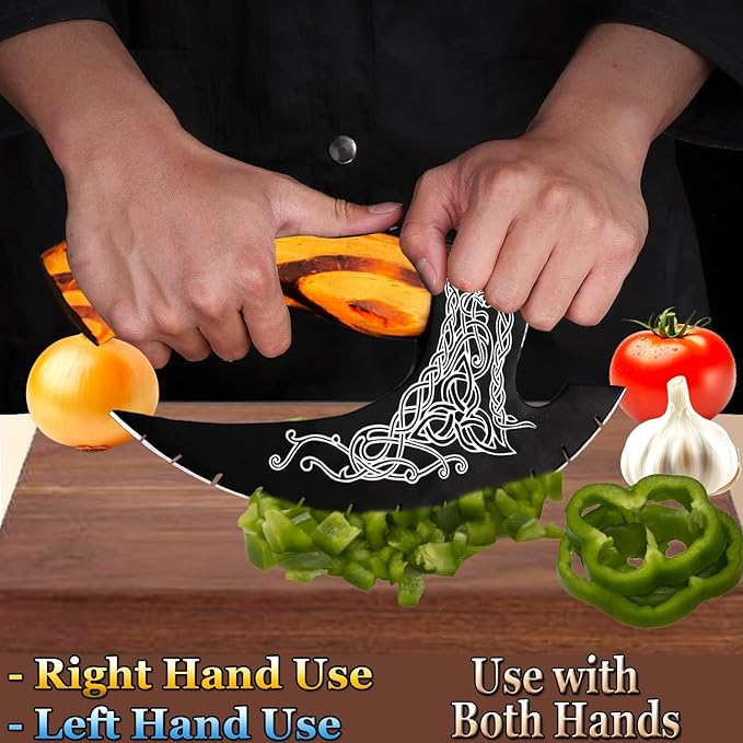 - ✅ Superior Performance with Sharp Cuts – The high-carbon steel blade with precision cut grooves ensures effortless, clean slices through pizza, cakes, meats, veggies, and even sausages. Whether it's a thin crust or a hearty loaf, this axe delivers precision and ease with every use.