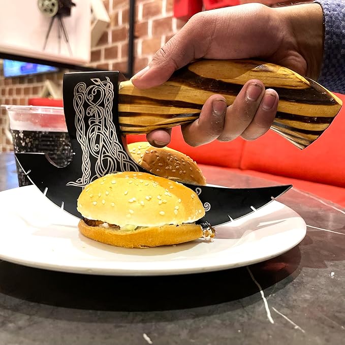 - ✅ Unique & Fun Pizza Cutter – Make pizza night even more exciting with the Pizza Axe! This one-of-a-kind cutter combines a sharp, elegantly engraved blade, medieval-inspired axe design, making it the perfect conversation starter for your kitchen.