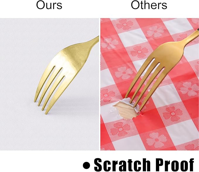 - [Sturdy & Functional] The surface of our tablecloth features premium vinyl material, which makes it more sturdy and protects your table from everyday wear and tear, and tableware scratches