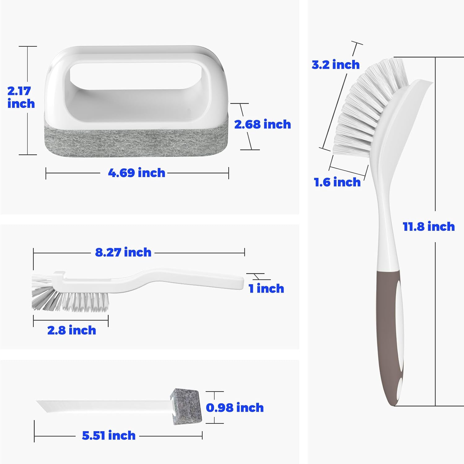 - Kitchen dish brush set includes 2 dish cleaning brushes, 1 dish scouring pad, 1 wire brush, 2 groove gap brushes.