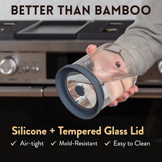 - Healthier Food Storage: Unlike plastic or bamboo, this sophisticated set of stackable borosilicate glass canisters with silicone lids are lead and cadmium free, won’t absorb odors or stains, have a high heat tolerance and are dishwasher safe