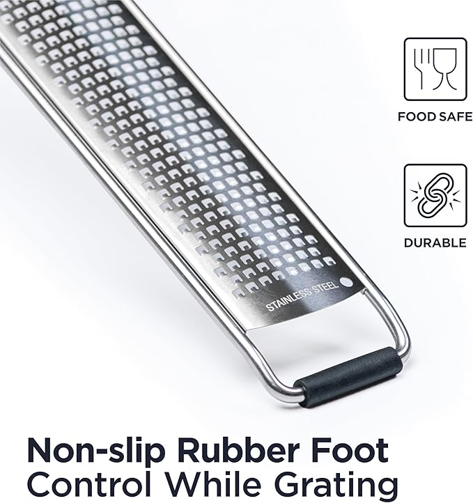 - ✅IMPROVE YOUR COOKING - Amaze your friends with new, restaurant-like recipes. Add strong new flavours with fresh lemon zest without any bitter pith taste. When using the chef zester with hard cheeses such as parmesan, you'll get a nice pile of grated cheese that melts almost instantly on hot pasta.