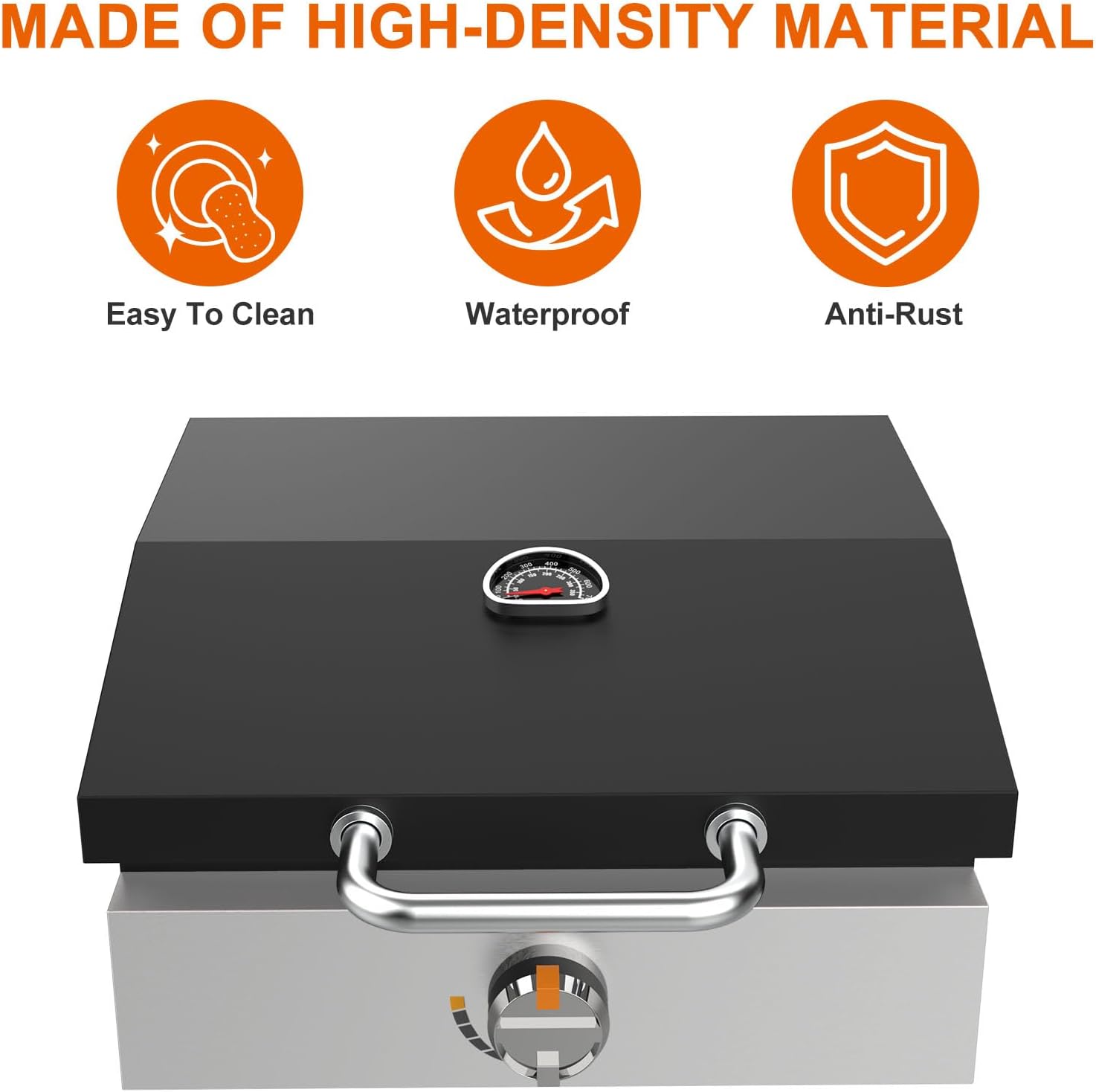 - 【Easy to clean】The dirt on the smooth surface can be wiped away with a damp cloth easily. A convenient hood helps keep your griddle clean.