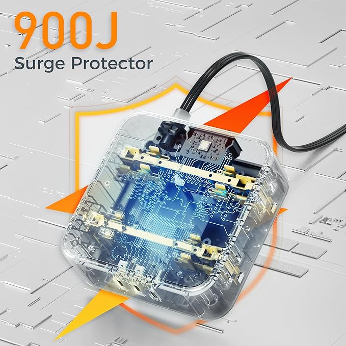 - Surge Protector Power Strip: Equipped with overload protection 900J, short-circuit protection, over-current protection, and etc; Reliable on/ off switch can automatically shut off and protect your expensive electronics, providing you with a safe and reliable charging environment