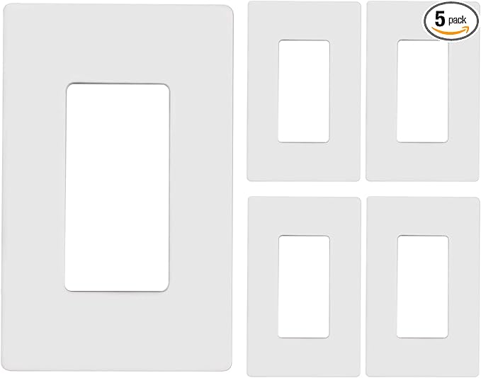 1-Gang Screwless Decorator Wall Plates, Child Safe Standard Size Outlet Cover, Unbreakable Polycarbonate Thermoplastic,Glossy White, 5 Pack,UL Listed