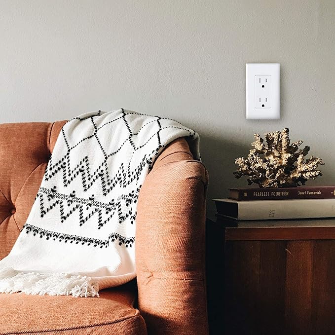 - Child safe design:Screw-less cover prevents children from removing the screws. Effectively protects children from touching dangerous outlets.