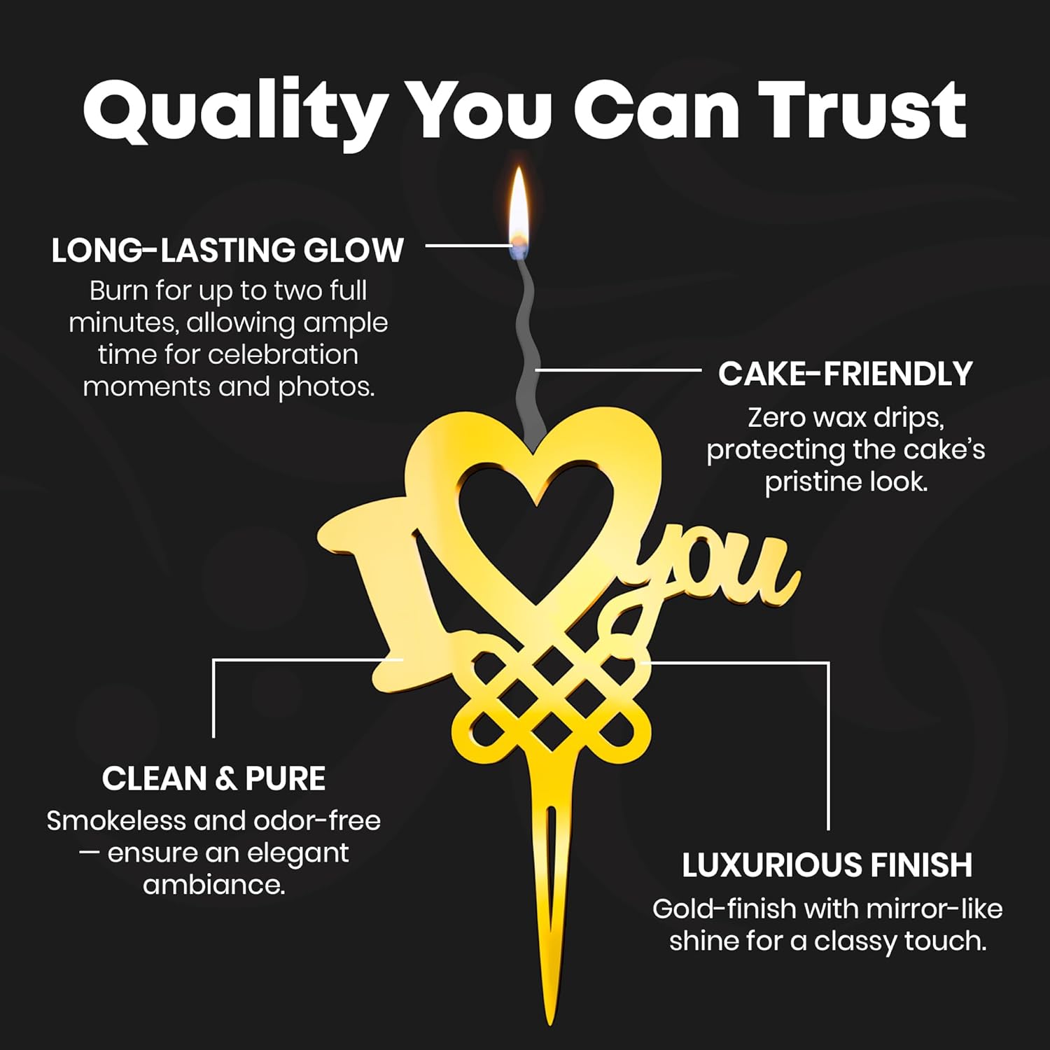 - Reusable and Romantic: The reusable nature of this gold cake topper candle offers an eco-friendly way to express affection. Perfect for couple gifts and love-themed decorations, it's a lasting piece for all future celebrations.