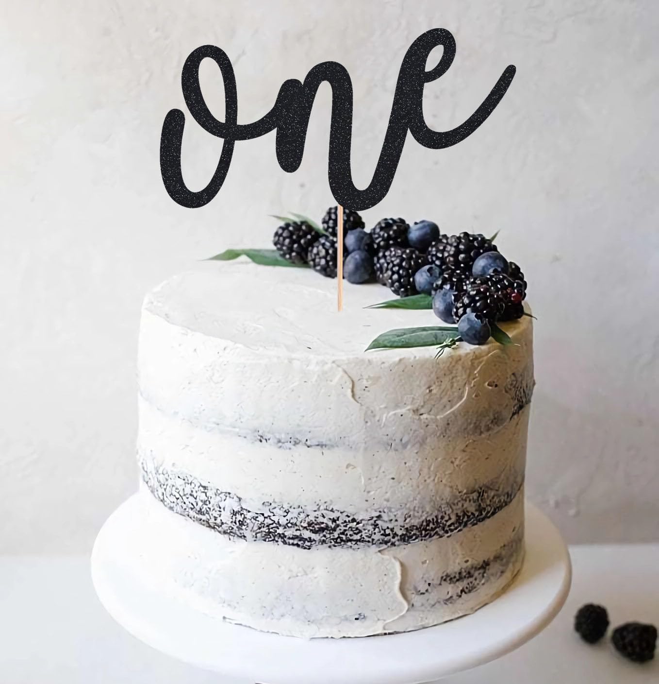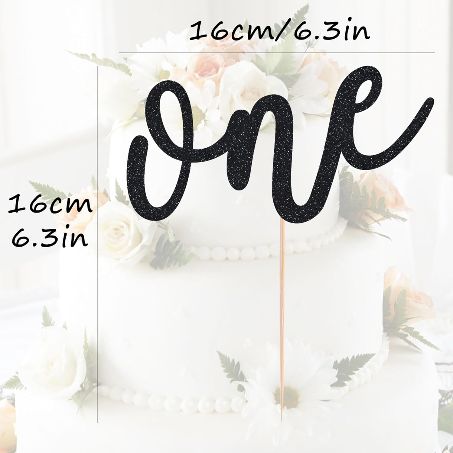 First Birthday Cake Topper - Black Glitter One Cake Decorating Supplies for Girls and Boys, Perfect for Baby Shower/Gender Revealing Party/Baby Party Photo Booth Props