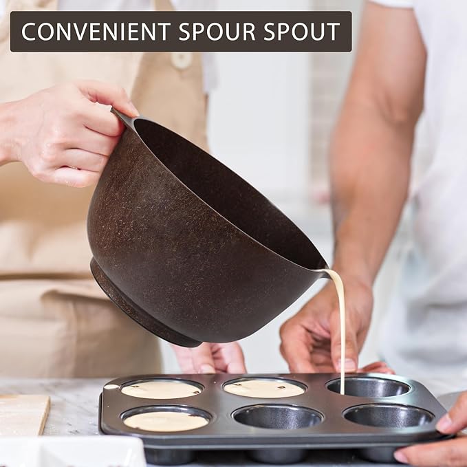 BoxedHome 4 Quart Large Plastic Mixing Bowls, Microwave Safe Mixing Bowl Set with Pour Spout, Nesting Bowls for Space Saving Storage(coffee)