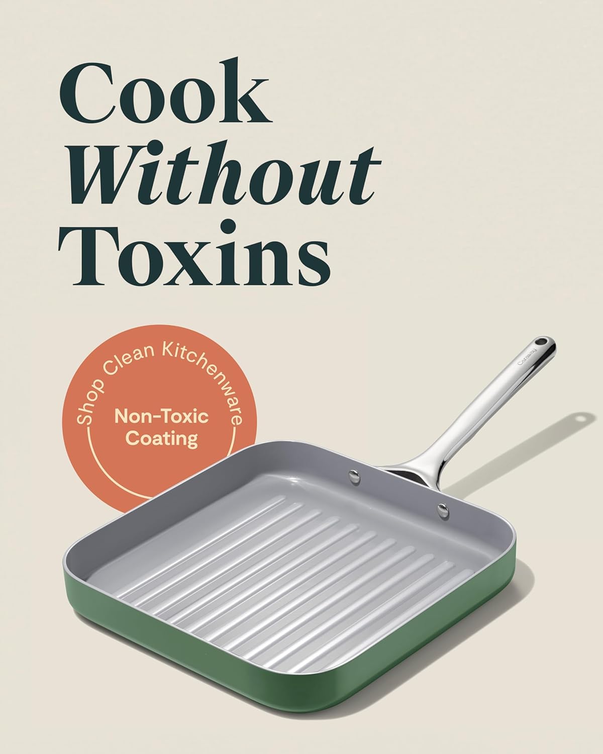 Caraway Square Grill Pan - 11” Grill Pan - Non-Stick Ceramic Coated - Non Toxic, PTFE & PFOA Free - Oven Safe & Compatible with All Stovetops - Sage