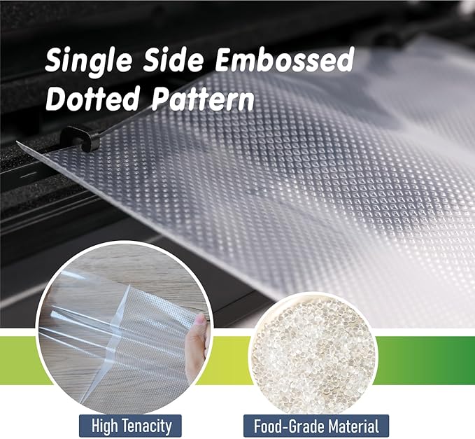 - 【Heavy duty commercial grade】Bbaoo vacuum sealer bags use 7-layer arch extrusion technology to produce, designed for maximum air removal. Precut bags with embossed channels increase suction, heavy duty and puncture prevention.