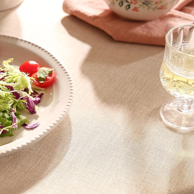 - APPLICABLE OCCASOIONS: To ensure long-lasting color and minimal shrinkage, we have replaced traditional full-linen processing with a new blend of 12% linen and 88% polyester, providing a superior user experience. This tablecloth not only protects your table from scratches and spills but also enhances the visual appeal of your dining area. It is perfect for a wide range of settings, including restaurants, cafés, home dining tables, parties, banquets, weddings, and outdoor patio tables.
