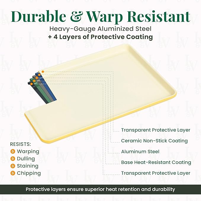 - Durable 4-Layer Construction: Made from heavy-gauge aluminized steel with five protective layers, these baking essentials resist warping and endures repeated use, delivering reliable performance and lasting quality for years of baking enjoyment.