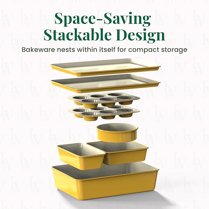 Larder & Vine 8-Piece Bakeware Set | Non-Stick Baking Set with Ceramic Finish | PFAS, PFOA, PTFE, and BPA Free Baking Essentials | Baking Sheets, Muffin Tins and Assorted Baking Pans | Limoncello