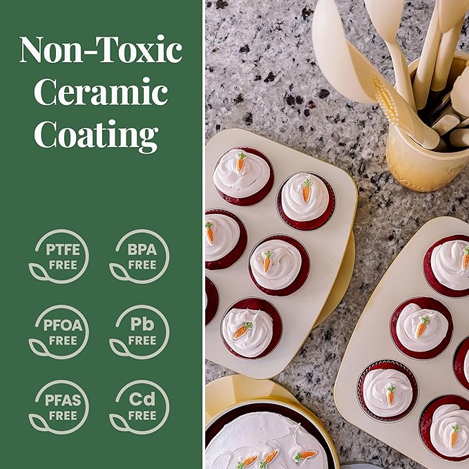 - Non-Stick Convenience: Our ceramic coated bakeware ensures quick, easy food release, allowing baked goods to slide out effortlessly and making cleanup a breeze after every delicious creation.