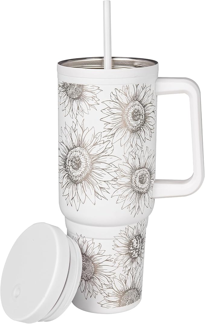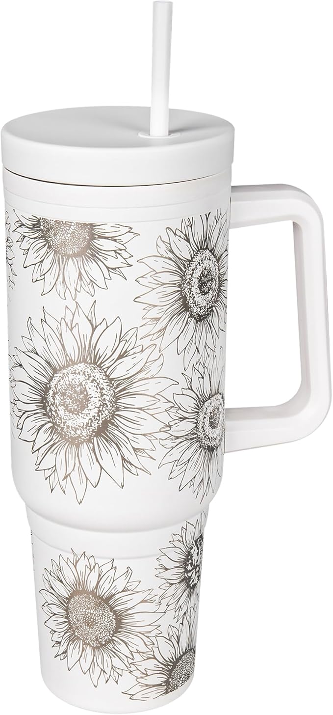 - š» SUNFLOWER DESIGN FOR THE SUNNY SOUL: Embrace the warmth and vibrancy of our 40oz insulated tumbler, laser engraved with a stunning sunflower design. Perfect for those who love nature and want to add a touch of sunshine to their day.