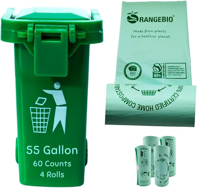 - EXTRA THICK & HEAVY-DUTY STRENGTH: OrangeBio 55–60 gallon compostable trash bags are durable, tear-resistant, and leak-proof, built for heavy-duty use. Measuring 38" x 56" x 1.5 mil, each box includes 4 rolls (15 bags per roll) — perfect for industrial kitchens, outdoor bins, and yard waste.