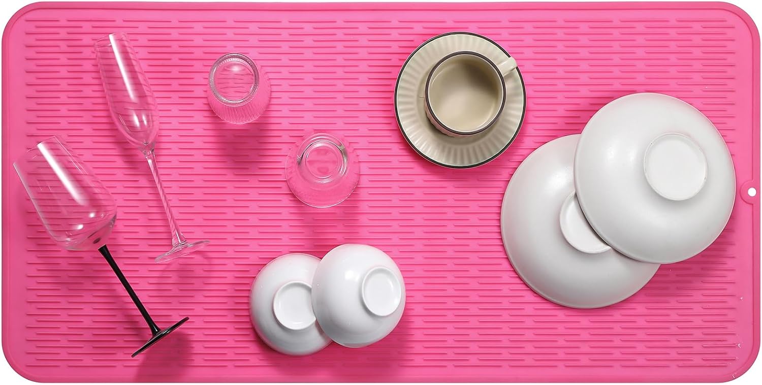 Silicone Dish Drying Mat for Multiple Usage,Easy clean,Eco-friendly,Heat-resistant Silicone Mat for Kitchen Counter or Sink,Refrigerator or Drawer Liner Rose 5XL 36inches x 18inches