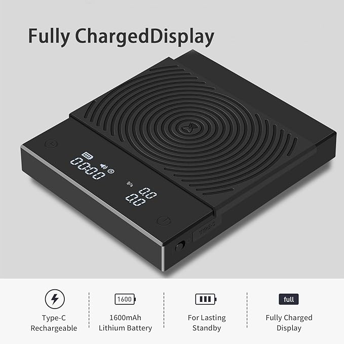 - AWESOME ACCURACY: Multifunction coffee scale equipped with high precision sensors and liquid Measurement technology, provide you accurate measurements from 0.1g up to 2kg(The initial minimum weight is 0.5G). Perfect for the volume of liquid measuring, home cooking, baking, and food portioning.