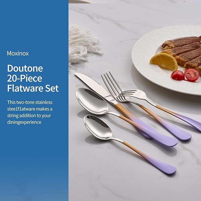 20-Piece Purple&Orange Silverware Set,18/0 Stainless Steel Colorful Handle Flatware Set, Service for 4, Modern Cutlery Set Includes Dinner Knives Forks Spoons, Mirror Polished,Dishwasher Safe