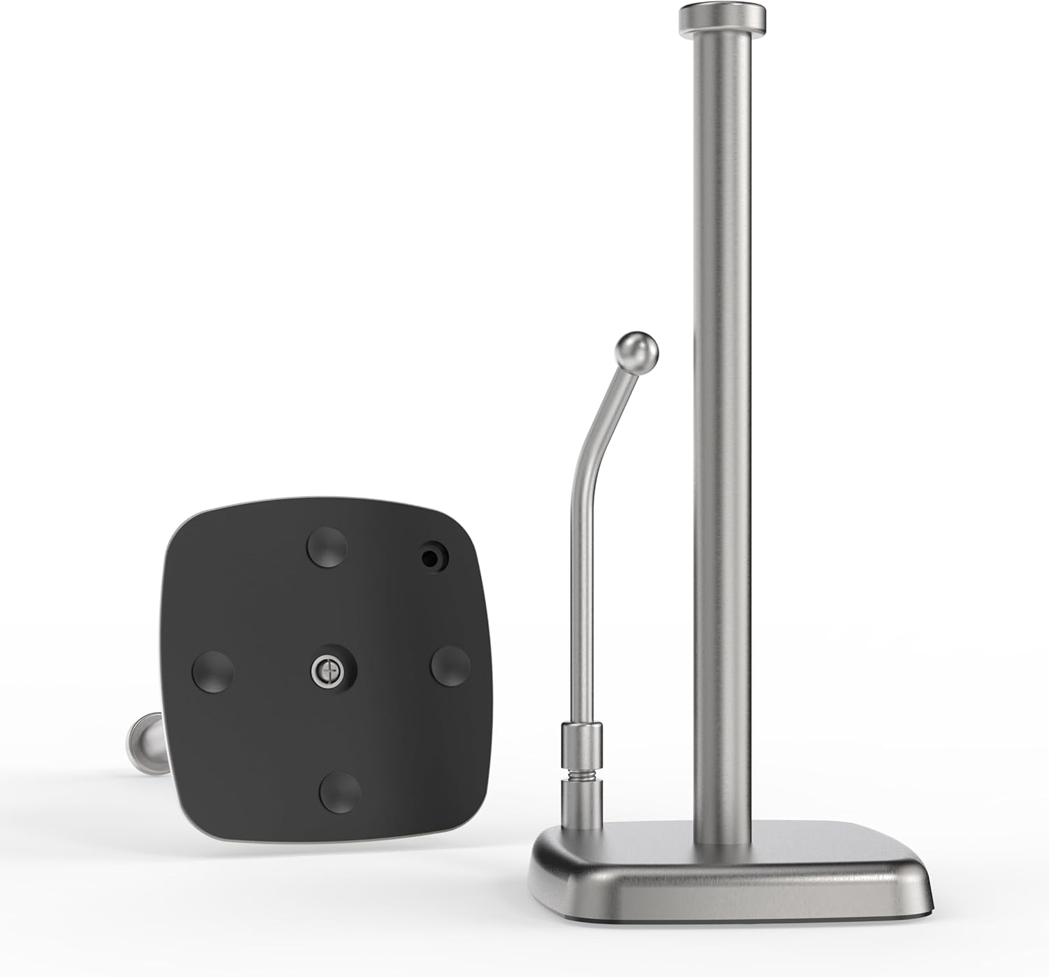 - 【PREMIUM ROLL DISPENSER】: Stable weighted base with suction cups to stay the paper towel holder in place when you are tearing paper sheets. It also prevents the mental scratching of your countertop or table.